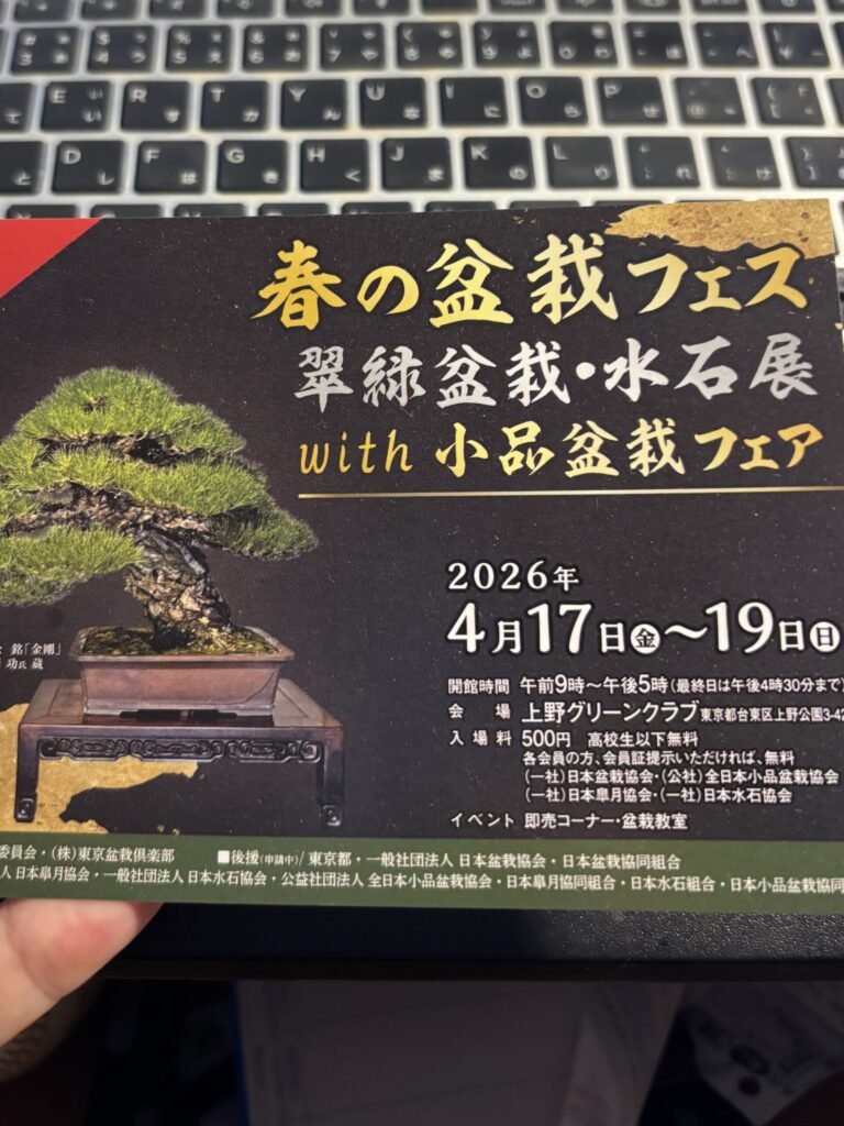 「春の盆栽フェス(翠緑盆栽・水石展 with 小品盆栽フェア)」へ出店いたします。